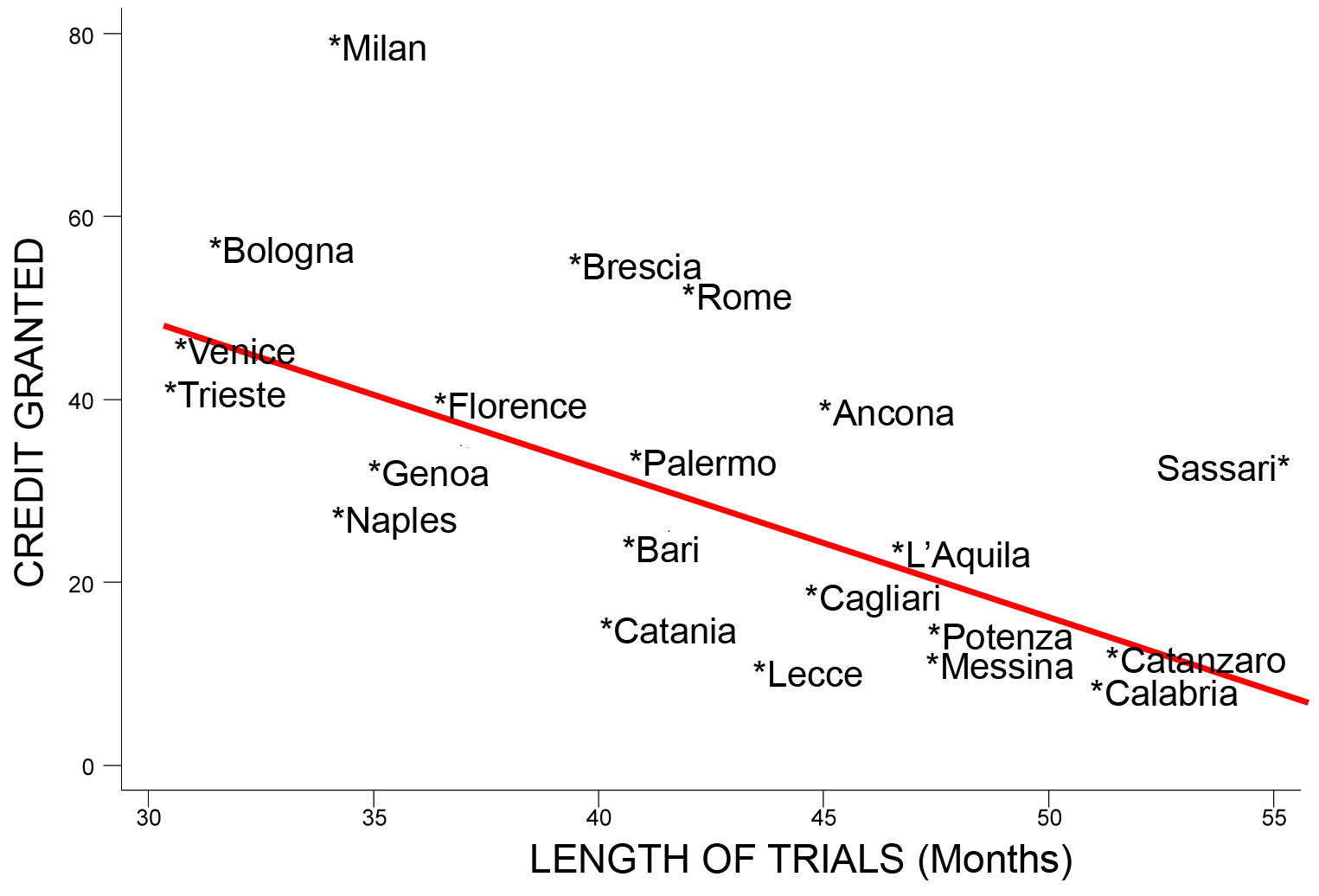 (2005) found that in Italian provinces with longer trials or larger backlogs of